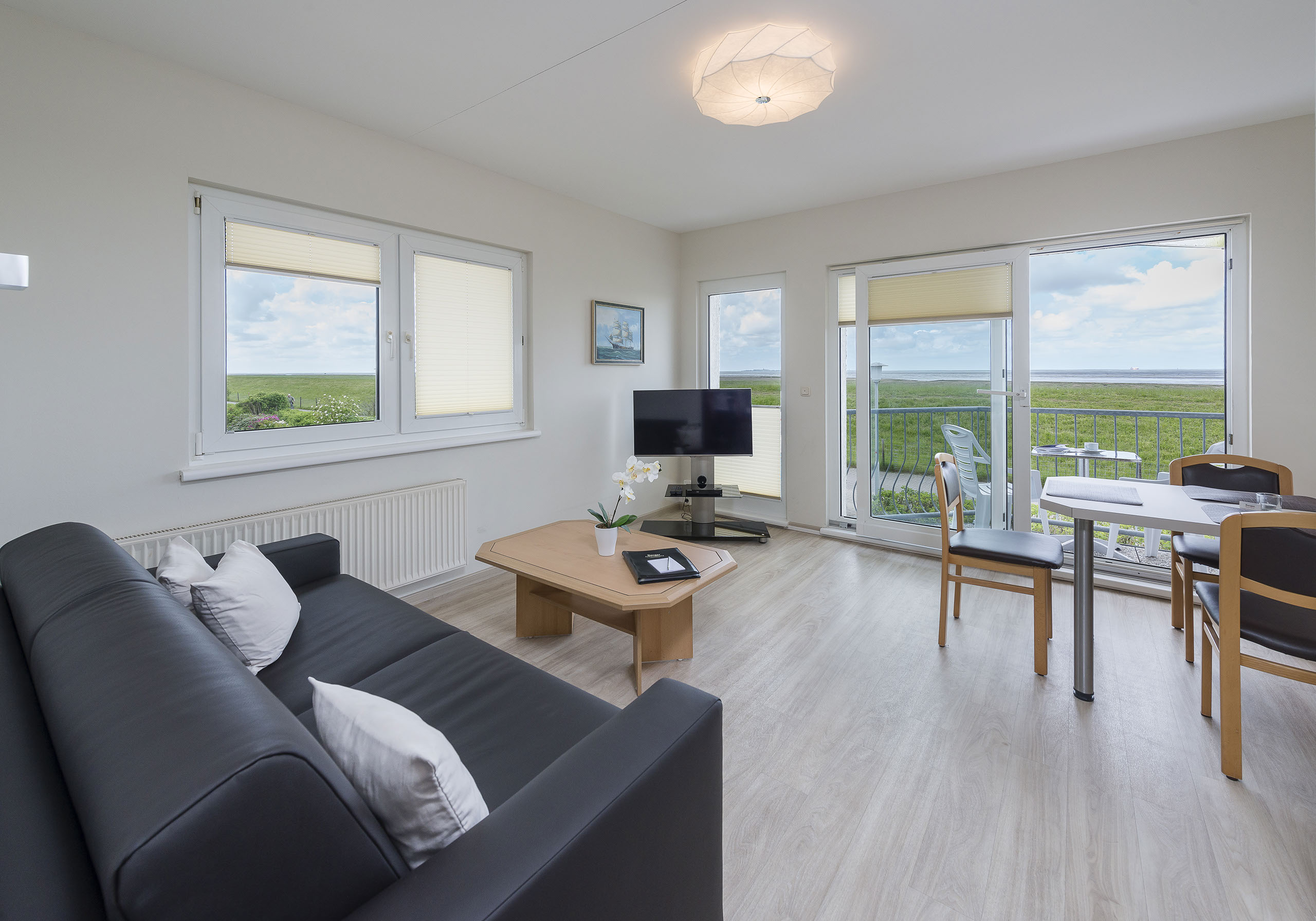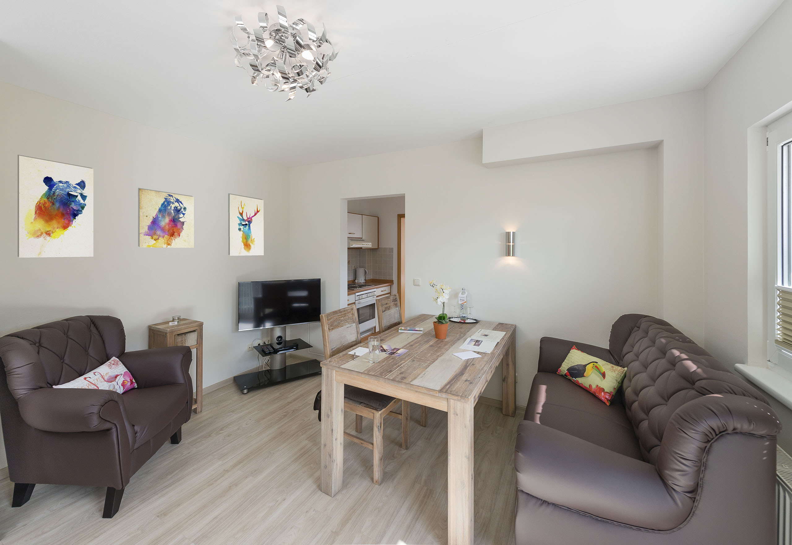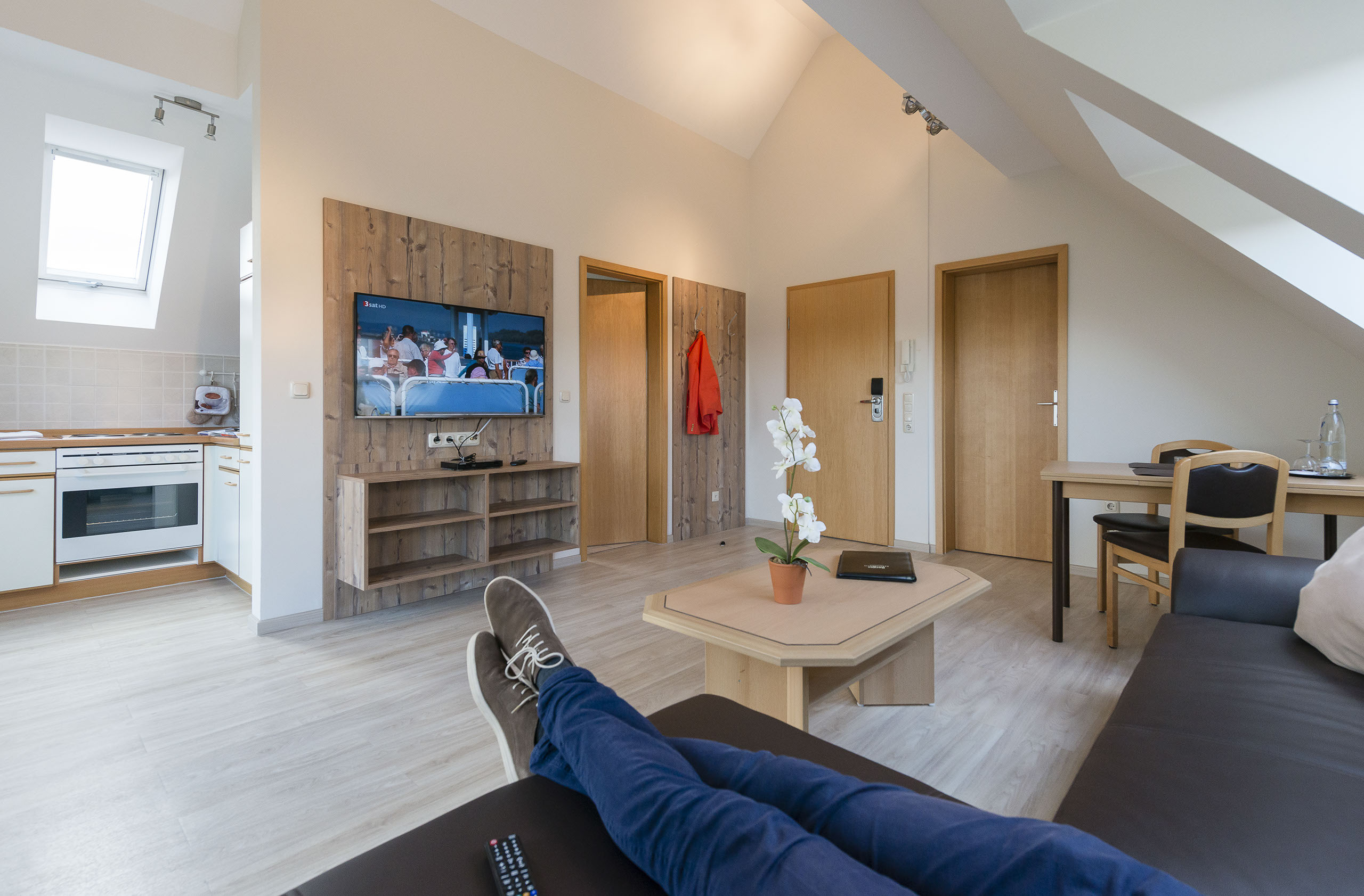 Im Wohnzimmer der Appartements finden Sie grundsätzlich eine Couchecke und eine separate Essecke. Und die meisten Wohnungen verfügen über Balkon oder Terrasse – so starten Sie bereits gemütlich mit unseren Brötchen in der Morgensonne in den Tag.